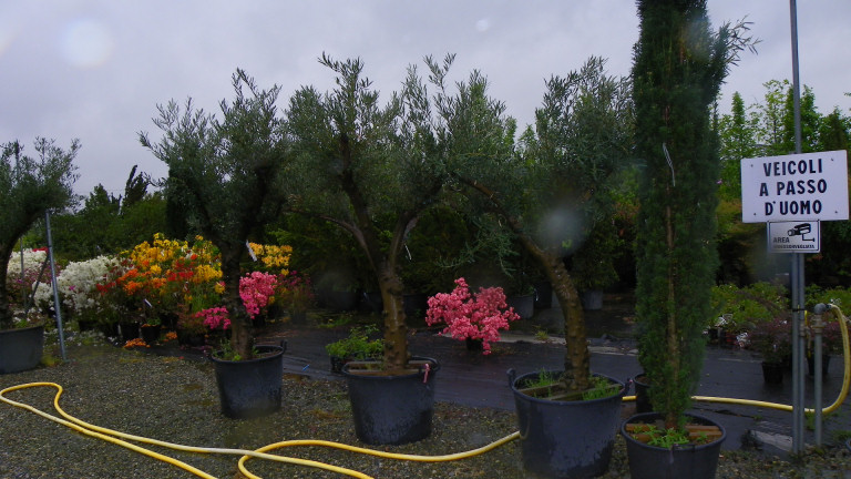 Alberature, siepi e cespugli tutti da esterno e forniti franchi di vaso, terricci e concimi per ogni esigenza, vasi in plastica, resina e cotto fiorentino, ciottoli e quadrotti di tufo di varie misure, corteccia e lapillo vulcanico, una vasta scelta di fiori stagionali.
